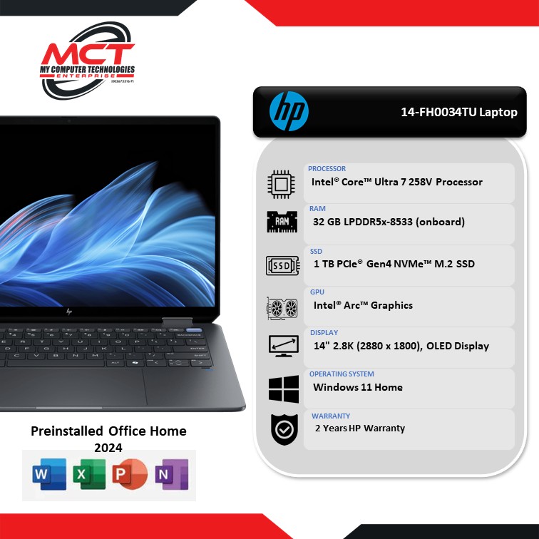 HP OmniBook Ultra Flip 14-FH0034TU 14″ 2.8K Laptop (CU7-258V, 32GB LPDDR5x, 1TB SSD, Arc, W11, HS+M365, 2Y)